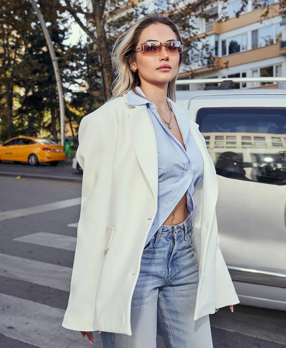 Beyaz Oversize Blazer Ceket ile her ortamda şıklığınızı ve rahatlığınızı ön plana çıkarın!