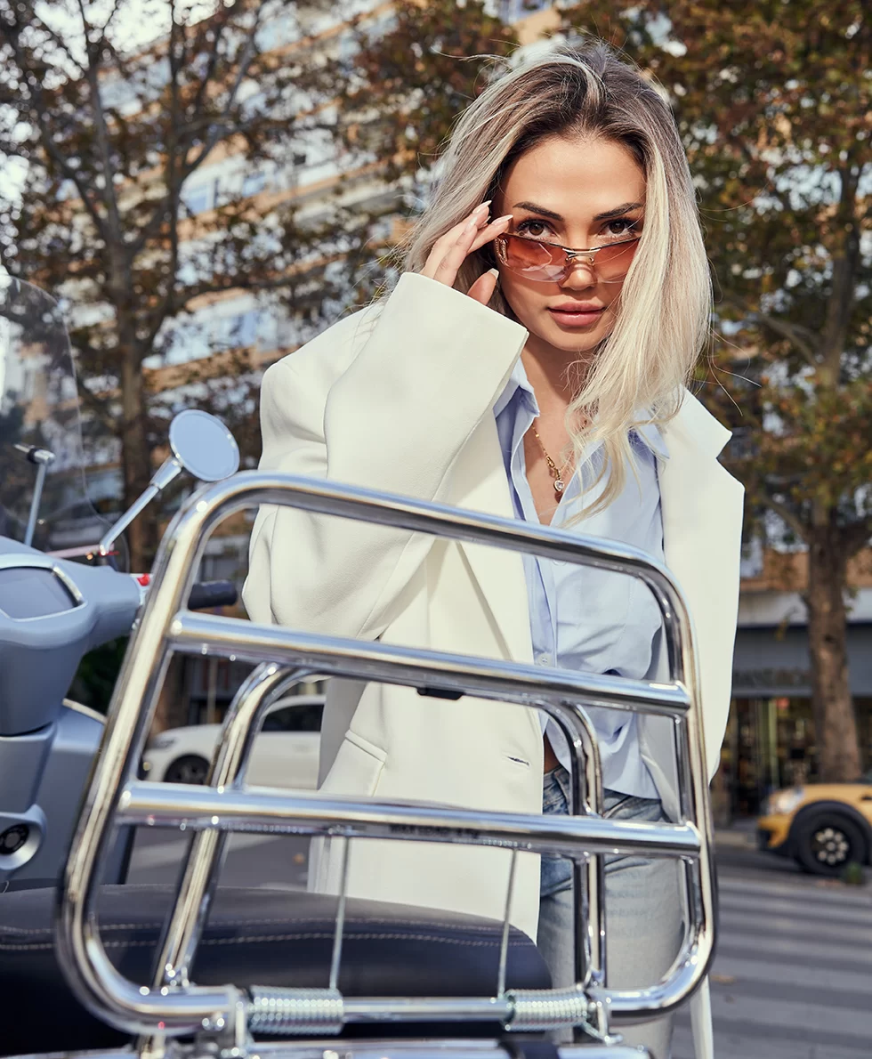 Modern kesimi ve zarif duruşuyla Beyaz Oversize Blazer Ceket, her kombine şıklık katmak isteyenler için ideal bir seçim! Hem günlük giyimde hem de özel davetlerde rahatça kullanabileceğiniz bu ceket, oversize yapısı sayesinde modern ve rahat bir stil sunar. Gardırobunuzun vazgeçilmez parçası olacak bu beyaz blazer, farklı alt parçalarla mükemmel uyum sağlar.