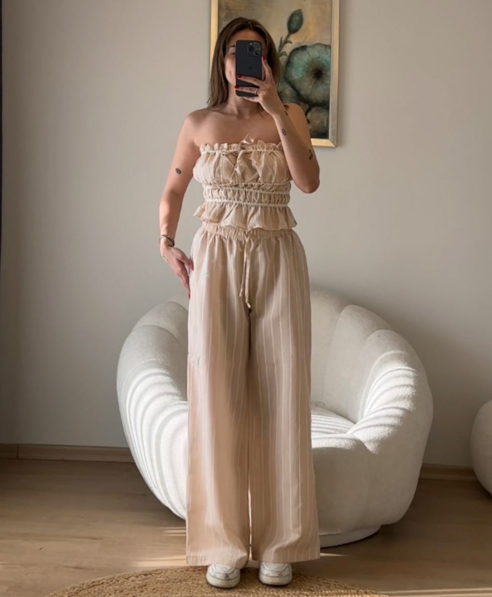 Çizgili Pudra Takım