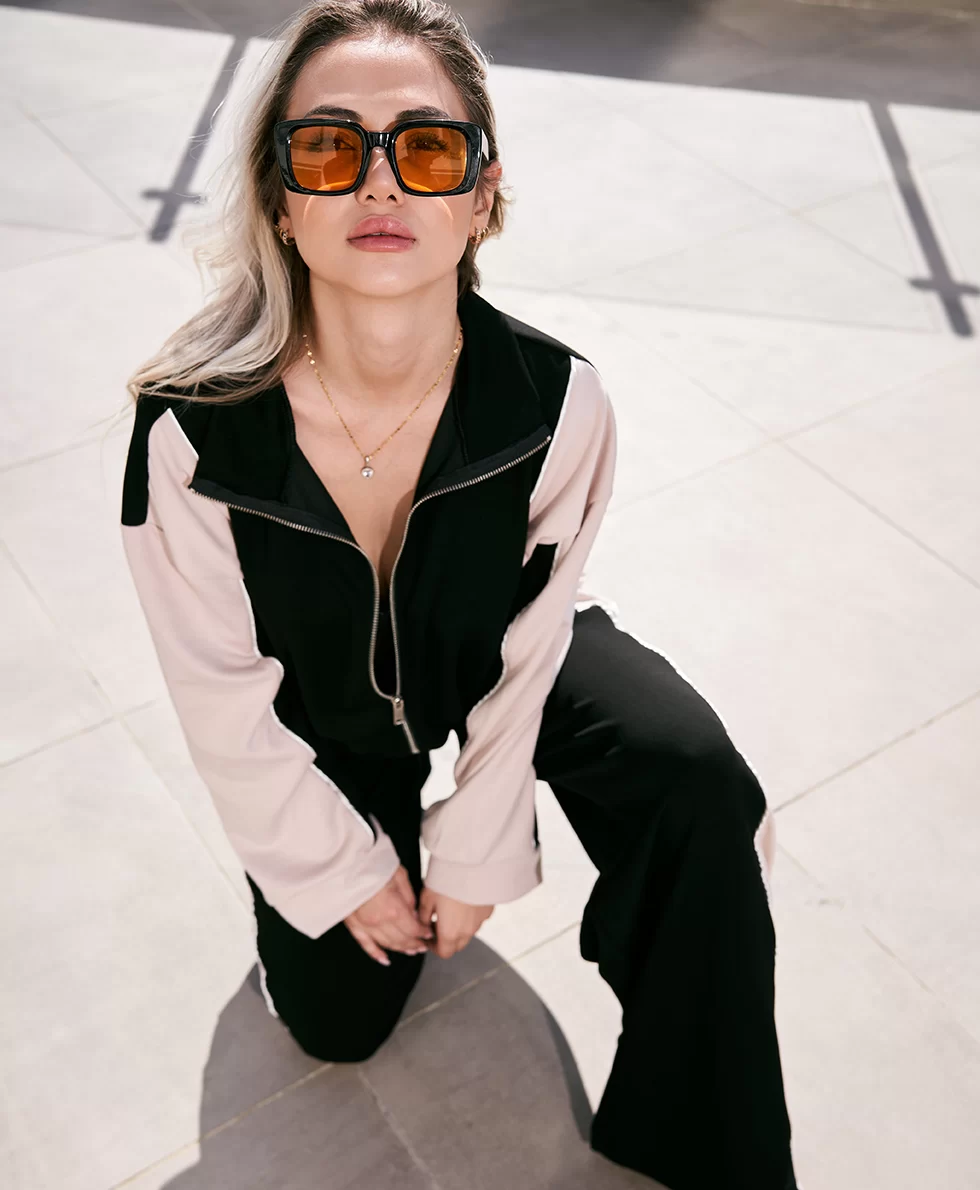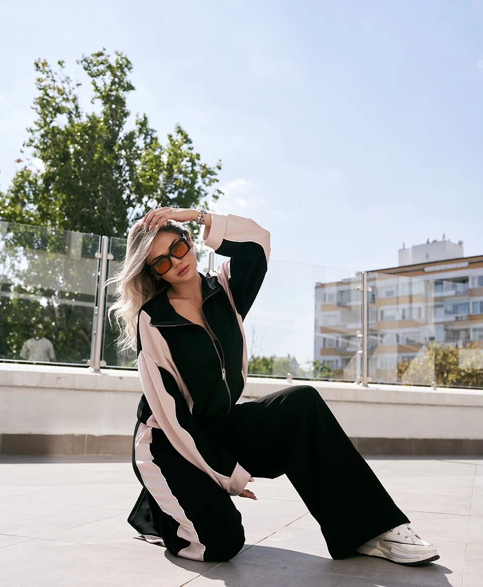 Rahatlığı ve zarifliği bir arada sunan Siyah Eşofman Takımı, pudra siyah detaylarıyla sade ama şık bir stil yaratmak isteyenler için ideal bir tercih! Plazo pantolonun bol kesimi ve eşofman üstünün sportif duruşu sayesinde hem günlük yaşamda hem de spor aktivitelerinde rahatça kullanabileceğiniz bu takım, her ortamda tarzınızı yansıtmanıza olanak tanır.