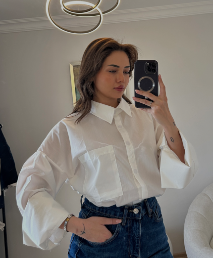 Kol Detay Beyaz Gömlek
