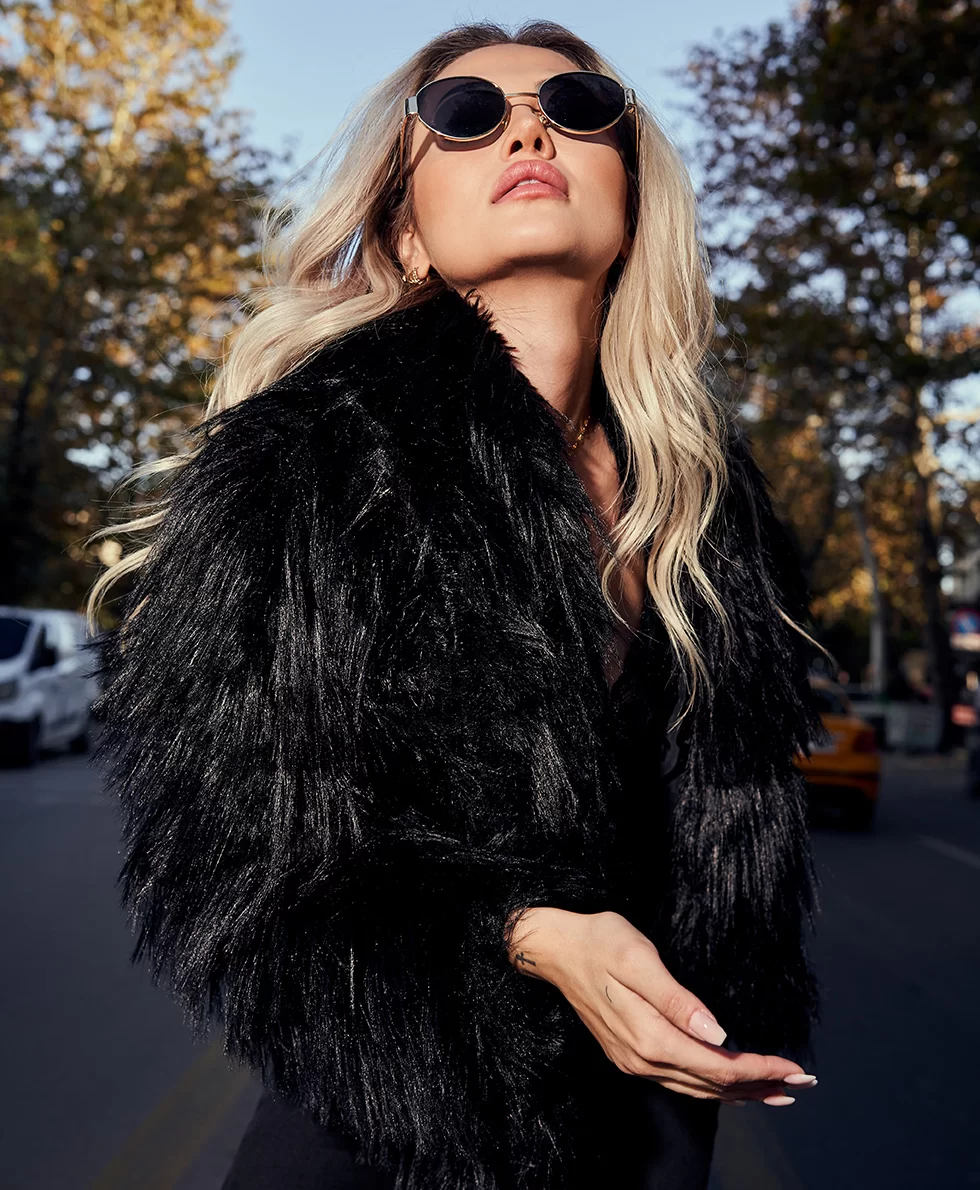• Göz Alıcı Tasarım: Şıklık ve sıcaklığı bir araya getiren kürk dokusu, soğuk kış günlerinde dahi stilinizden ödün vermemenizi sağlar.