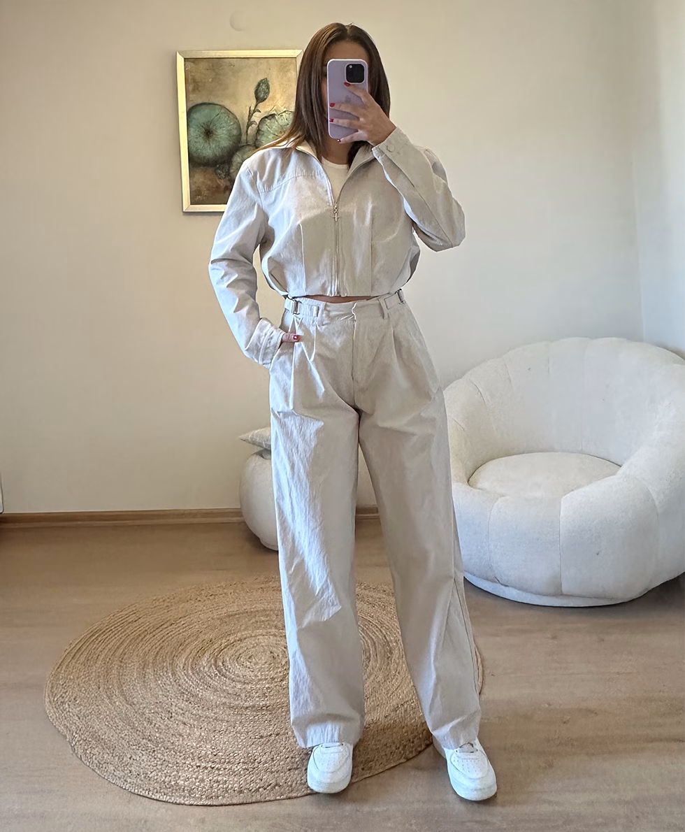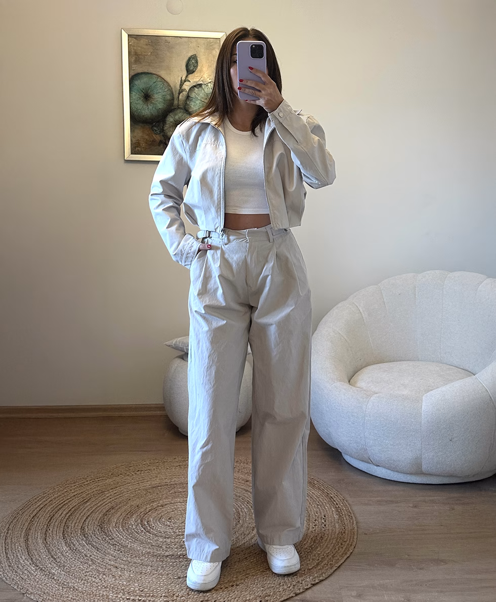 - Kesim: Crop Ceket, Wide Leg Pantolon