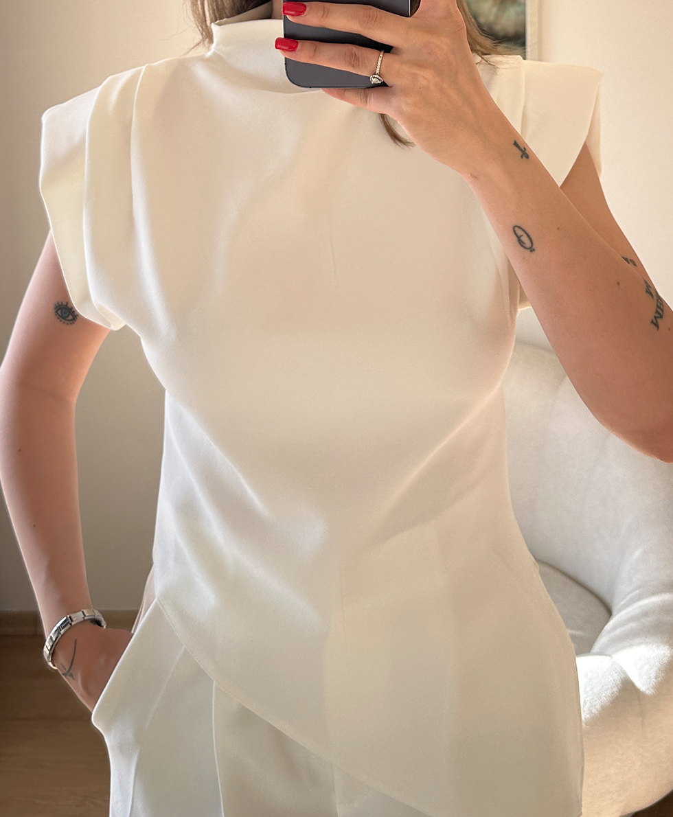 Vatkalı Beyaz Bluz
